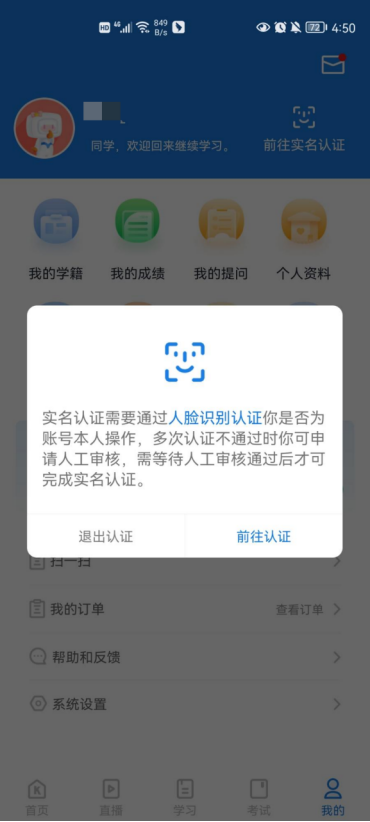 点击右上角的【前往实名认证】,将会跳转页面进行人脸识别。人脸识别通过后,则完成实名认证。
