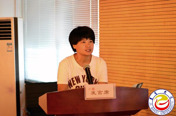 学员代表谭艳发言。她分享了自己从事初中教学管理中遇到的问题,希望通过此次培训提高对学校的管理与建设能力,着力解决在学校管理上的重点和难点。
