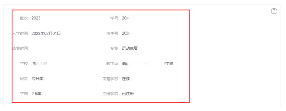 点击查看学籍信息,核对个人学籍信息是否正确,学籍信息无误可点击确认,若有误可联系教务老师进行修改