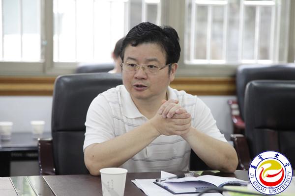 副校长冷志明在汇报会上发表讲话。他对姚月玲一行来校指导工作表示欢迎和感谢。他说,我校申报湖南省高等教育自学考试学习服务中心,一是能有效满足社会的需求,二是能促进我校继续教育的发展,为“院办校”提供动力,诚请各位专家多多指导和关怀。